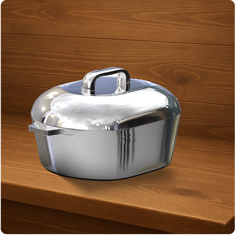 Cook like a pro with our oval Dutch oven! Thanks to its superior aluminum construction, this cast aluminum cookware heats quickly and evenly, making your dishes perfectly cooked, browned, and ready to impress.